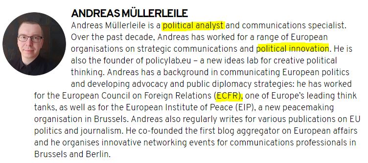 Andréas Müllerleile est aussi passé par L’Institut Européen de la Paix (sic.) (source) :