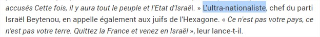 Je termine par un dernier point intéressant : vous aurez noté que l’extrême-droite, c’est mal partout (ce qui est vrai), sauf en Ukraine et en Israël – ou il n’y a que des « ultranationalistes »…