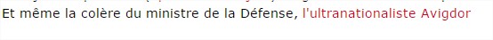Actuel Ministre de la Défense Israélien, ancien Ministre des Affaires Étrangères le type, hein ! Les cinglés sont vraiment au pouvoir.