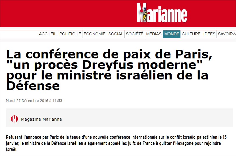 Mais vous noterez déjà qu’on a donc le Ministre de la Défense Israélien qui nous traite donc d' »Accusateurs de Dreyfus », donc d’antisémites, qui crache sur notre gouvernement (il fut une époque où l’Honneur comptait et où ce genre de propos ne seraient jamais passés) et à la limite aussi sur Zola, Péguy, Clémenceau… Mais cela ne mérite donc qu’une mention à la fin d’un article du Monde assez long, sans commentaire. Rien en titre, rien en sous-titre, normal quoi…
