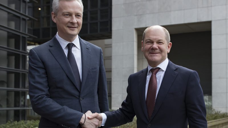 Le ministre de l’Economie française, Bruno Le Maire, avec son équivalent allemand, Olaf Scholz à Paris, le 16 mars 2018 LANGSDON