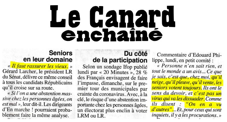 Rappel : on parle d’une maladie qui cause actuellement des taux de mortalité de 10 à 20 % chez les plus de 80 ans malades (et c’est leur propre électorat !)…