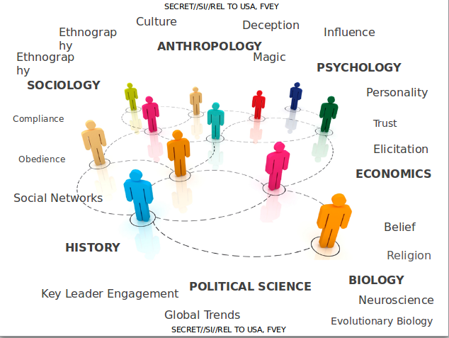 Et puis il y a aussi l’utilisation de la psychologie et d’autres sciences sociales non seulement pour comprendre, mais aussi pour façonner et contrôler le déroulement du militantisme et des échanges en ligne. Le nouveau document que nous publions aujourd’hui souligne le travail de la « Human Science Operations Cell » [Cellule des opérations de sciences humaines, NdT] du GCHQ, qui a pour mission le « renseignement humain en ligne » et « les stratégies d’influence et de déstabilisation ».