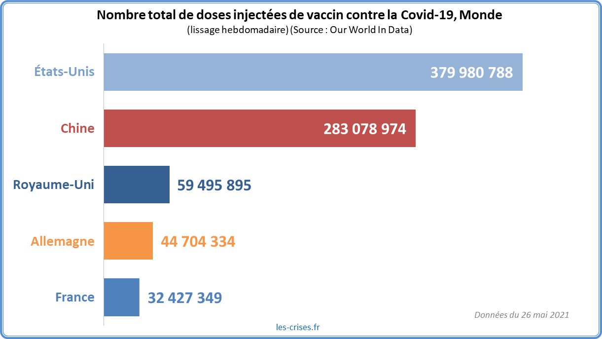 Voici la situation actuelle, les États-Unis ont été très efficaces avec 380 millions de doses de vaccin injectées :