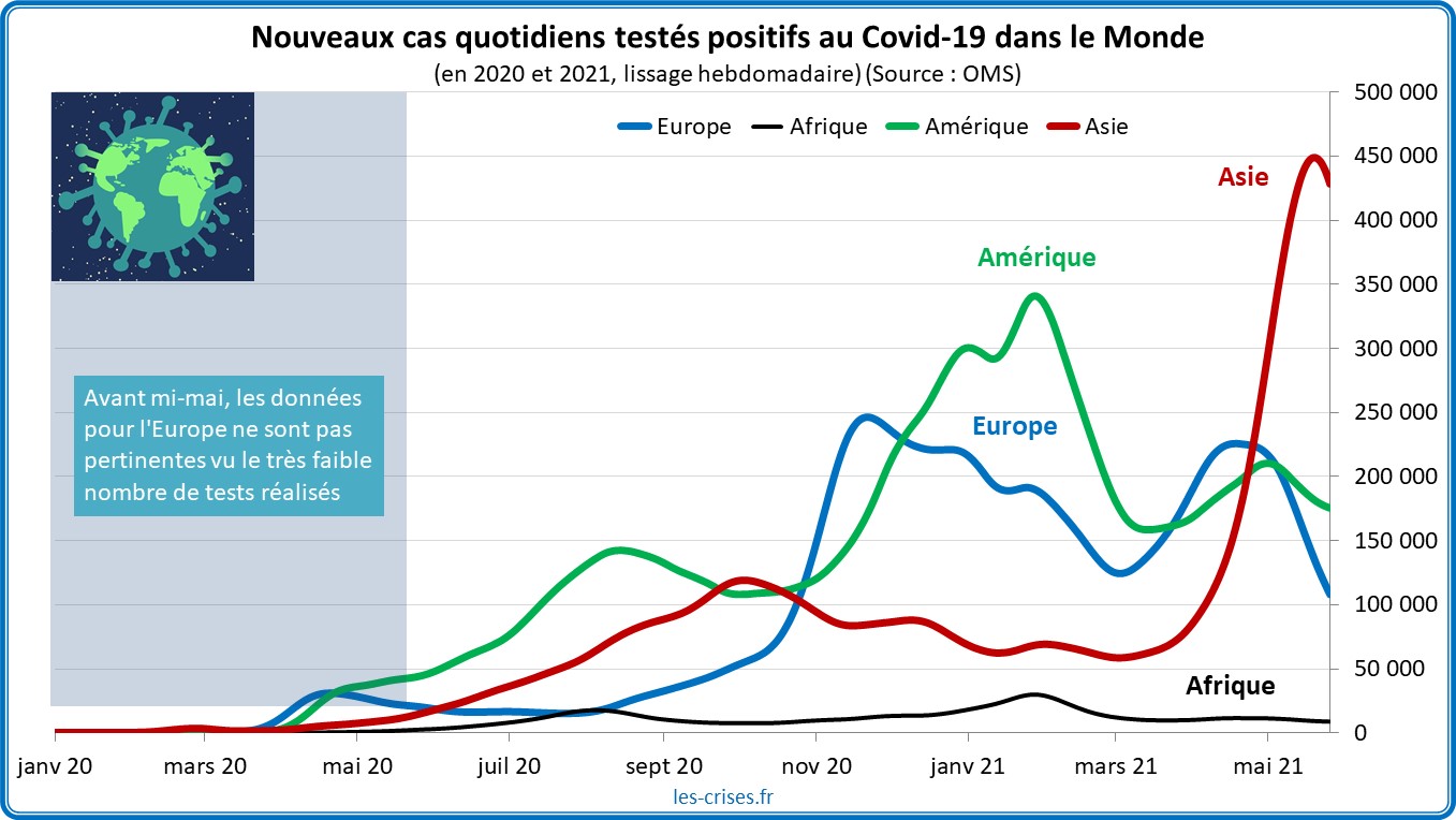 La pandémie a enfin cessé de croitre – espérons pour son maximum historique ! – et retourne vers les 700 000 contaminations par jour.