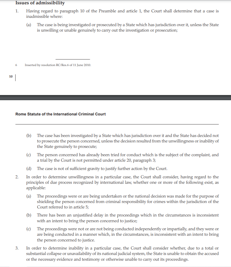 Alors pourquoi n’a-t-il pas poursuivi ? Le procureur a décidé de classer l’affaire sur la base du principe de « complémentarité ». Cela signifie que la CPI ne peut pas engager de poursuites si le gouvernement concerné – le gouvernement britannique dans ce cas – mène lui-même une véritable enquête ou engage des poursuites. Le procureur a fondé sa décision de ne pas poursuivre sur ces clauses du statut de Rome :