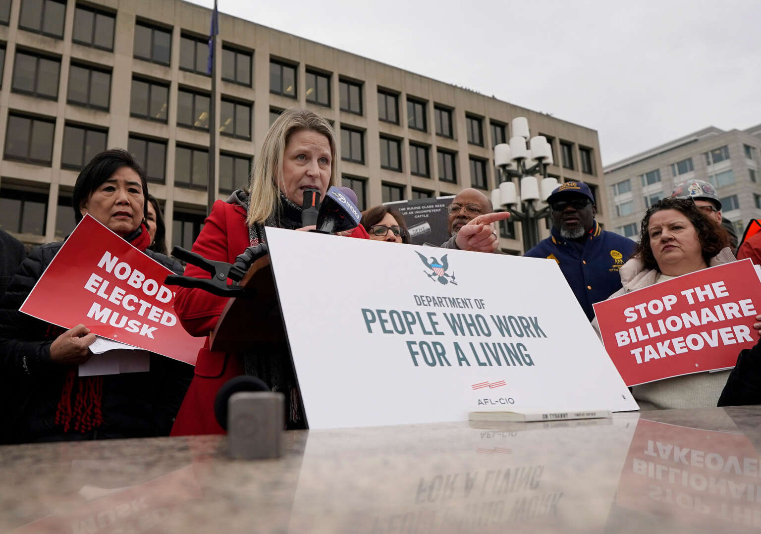 La plainte a été déposée par Democracy Forward au nom de l’AFL-CIO et de ses syndicats affiliés, l’American Federation of Government Employees (AFGE), l’American Federation of State, County and Municipal Employees, le Service Employees International Union (SEIU) et le Communications Workers of America (CWA). L’Economic Policy Institute s’est également joint à l’action en justice.