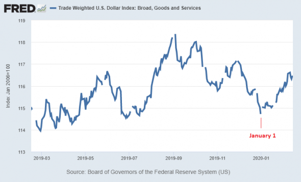 Son bilan est donc plutôt stagnant que croissant. Début janvier a aussi été marqué par le plongeon de plusieurs indices du dollar, qui a rebondi énergiquement depuis. Autrement dit, la Fed a resserré brièvement son bilan, et cela a encore raffermi le dollar, toutes choses étant égales par ailleurs.