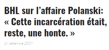 « » »La revue La Règle du jeu, dirigée par Bernard-Henri Lévy, s’engage aux côtés de Roman Polanski et mobilise autour de sa pétition écrivains et artistes.