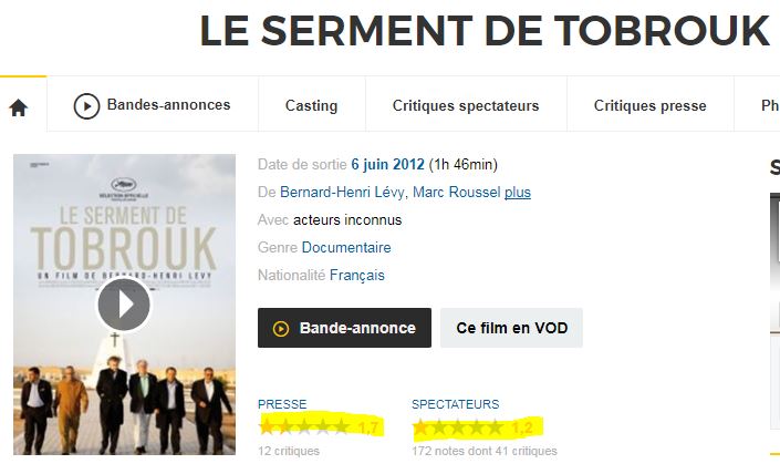 Et donc, grâce à BHL, j’ai découvert qu’un film pouvoir avoir une note de 1,2/5 sur Allociné… ![]()