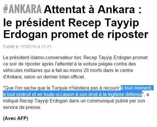 Erdogan dit qu il n hesitera pas a utiliser son droit a lanlegitime defense (comme la france).