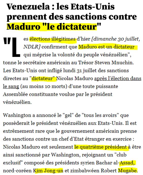 Ainsi « le monde » livre des articles pour expliquer le Venezuela, notamment par une « journaliste » de Bogota en Colombie, un pays qui a annoncé ne pas reconnaître la constituante. etc etc