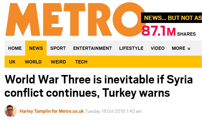 AlerterDepuis deux semaines des allumés souhaitent un conflit contre la Russie sur France Info et dans les torchons bien connus, ceci sans complexes. Maintenant que les médias russes en tirent la conclusion, ils trouvent que ce sont des « délires ». Et eux, ils font donc des poissons d’avril en octobre peut-être?
