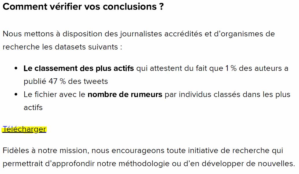 Précisons également que, selon leur site, l’équipe du DisinfoLab est très limitée, que Nicolas Vanderbiest est le cofondateur de l’association, et la seule « caution scientifique » (bien qu’il soit encore étudiant doctorant, diplômé en information et communication). Il a été pratiquement la seule personne à communiquer des informations techniques sur Twitter sur l’étude en cours :