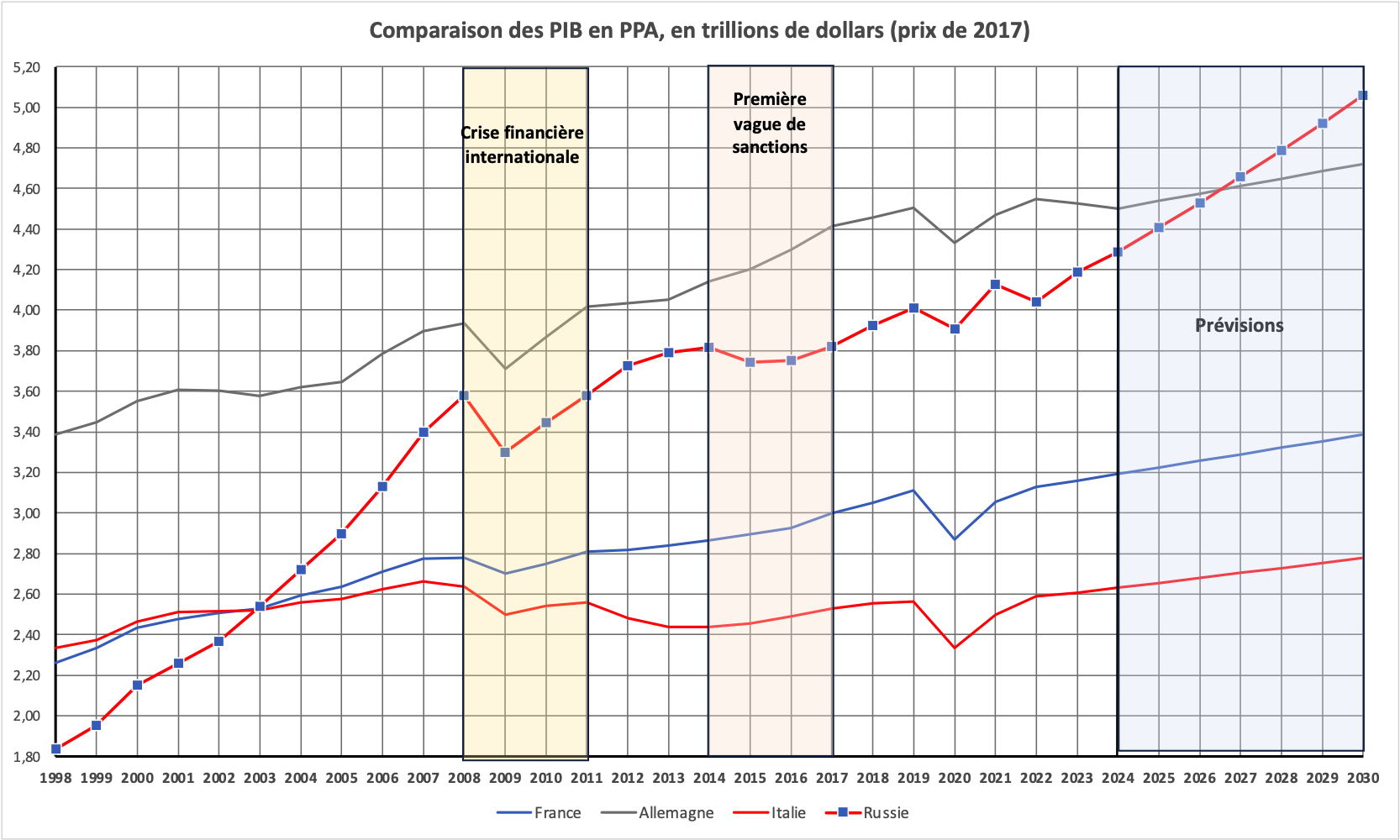 Mais, le Ministre des Affaires Étrangères, M. Stéphane Séjourné, n’a visiblement pas voulu être en reste sur le Premier ministre[4]. Il a exprimé ses « doutes » quant aux résultats de l’économie russe. Ignore-t-il que les résultats pour 2022 et 2023 (-1,2% en 2022 et +3,0% à +3,6% en 2023) ont été validés par une organisation internationale qui s’appelle le FMI[5], et qu’ils correspondent à l’avis de très nombreux économistes ? Sous-entend-il que le FMI serait contrôlé par les russes, voire – horresco referens – pro-Poutine ?
