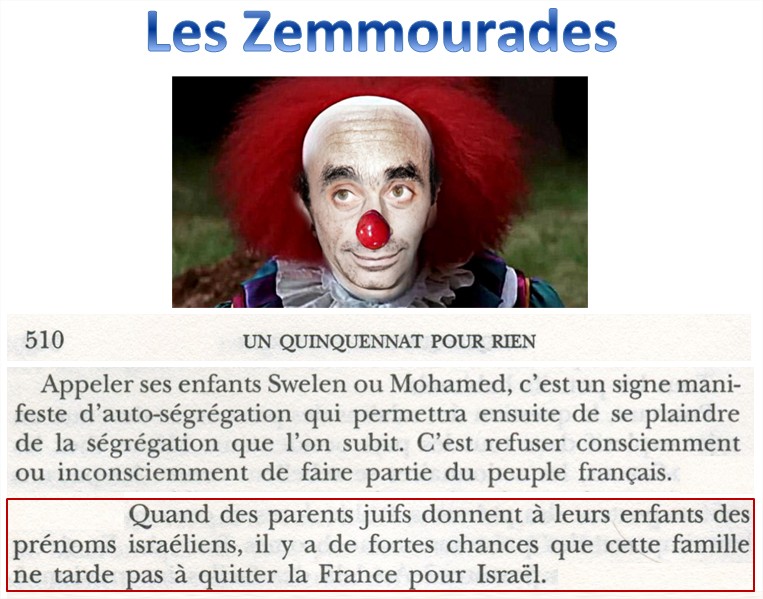 AlerterEt « Zemmour », ca sonne pas tres francais, ca, » Zemmour ». Pourtant ca se change un nom de famille, on peut faire les démarches non ? Il aurait pu changer en « de Mour » ou « Lamour ». Quand on veut, on peut.