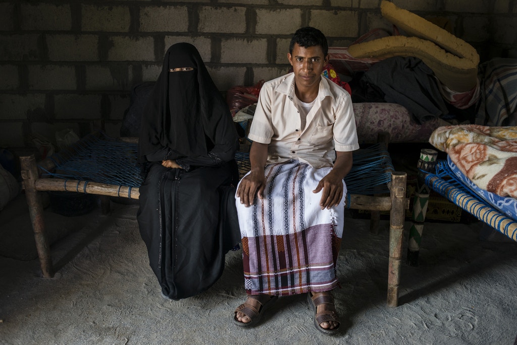 Yahya Ja’afar, 20 ans, assis avec sa femme Fatum Allam, 20 ans également, le 6 mai 2018. Photo : Alex Potter pour The Intercept
