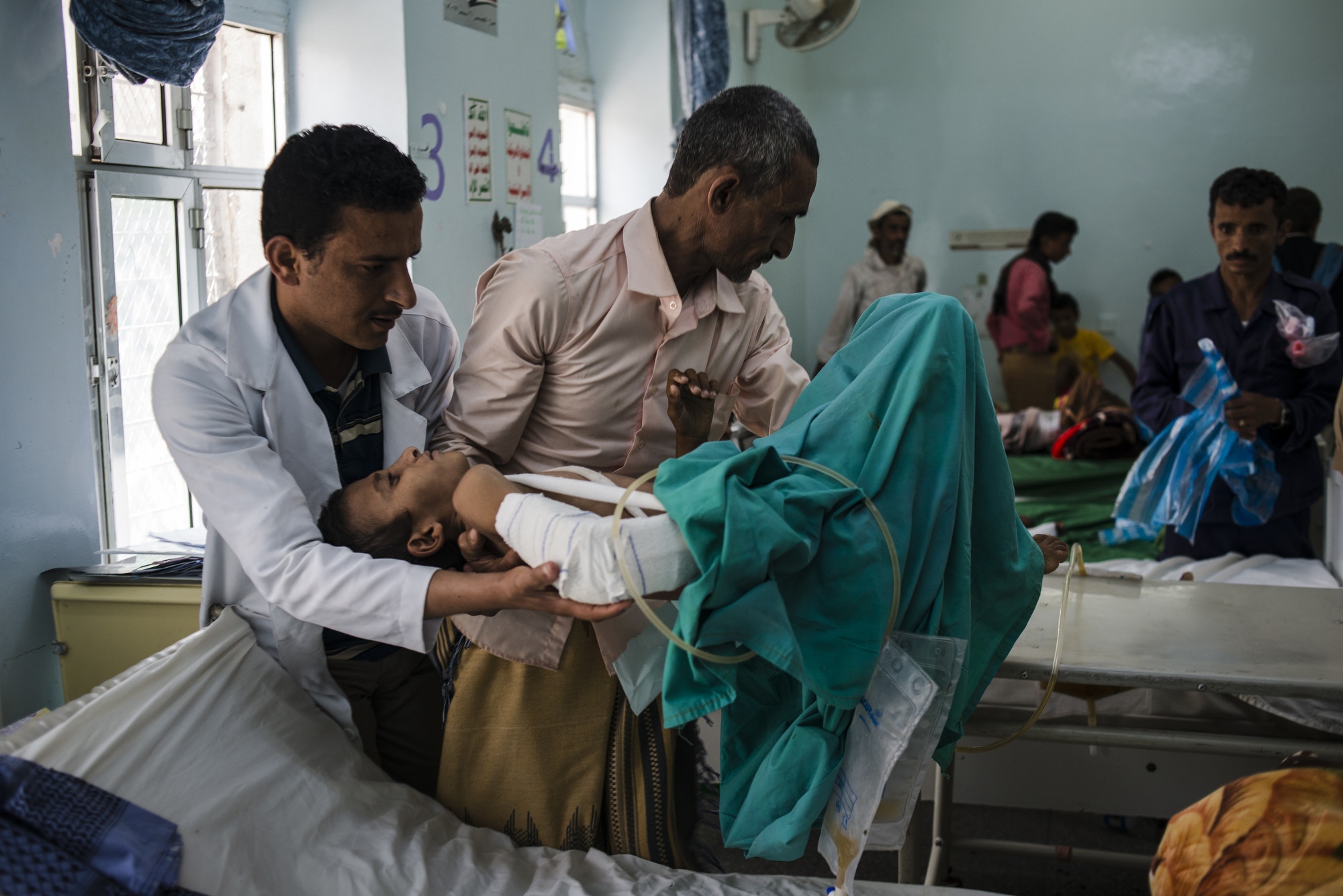 Mohammad Ali vient chercher son fils, Abdo, le 6 mai 2018, à l’hôpital Jumhuri à Hajjah, au Yémen. Photo : Alex Potter pour The Intercept