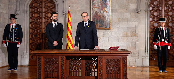 Investiture de Quim Torra comme président de la Catalogne le 17 mai 2018. (Généralité de Catalogne, Wikimedia Commons)