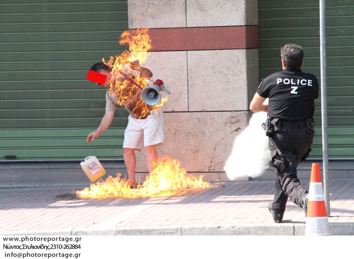 La réponse du gvnmt devant chaque expression de mécontentement: gaz massif et violence. Tout est fait pour empêcher les manifestants de poursuivre tout mouvement d’ampleur. Et la police (surtout les groupes anti émeutes et les motards (casques blancs) qui sont hais en Grèce) a une liberté d’action assez surprenante et … inquiétante. Le gouvernement a refait sont stock de gaz lacrymo, bien leur en a pris, car les nouvelles mesures prévues pour ce soir (a priori nouvelle baisse de la retraite et licenciement massif dans la fonction publique) et après celles d’hier (et de la semaine dernière, et de la semaine d’avant) ne risquent pas de calmer une population déjà exsangue.