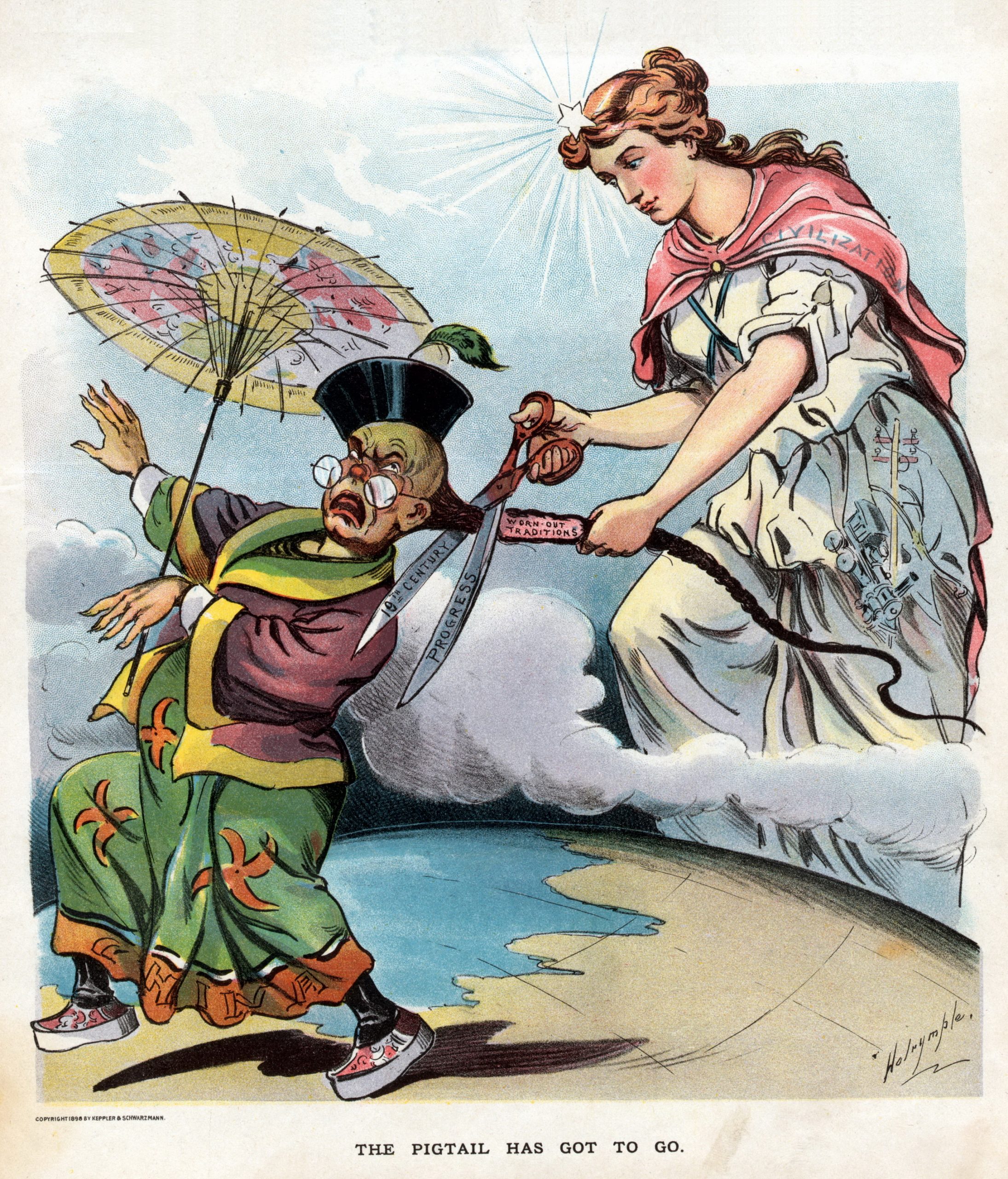 « Éminemment conservateur, esclave de la tradition, le peuple chinois est le seul dont la civilisation ait pu résister si longtemps dans l’histoire du monde. Et pourtant ce peuple, si rigide et si fidèle dans son culte du passé, est décidé à abandonner la natte, signe caractéristique de sa race depuis le XVIIe siècle.