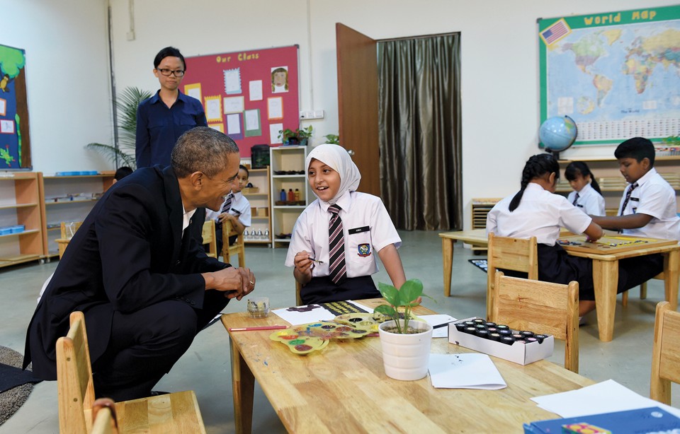 Obama en visite dans un centre de réfugiés à Kuala Lumpur lors d’un voyage en Asie du Sud-Est l’automne dernier. Il considère la région comme faisant plus partie intégrante de l’avenir de l’Amérique que le Moyen-Orient.