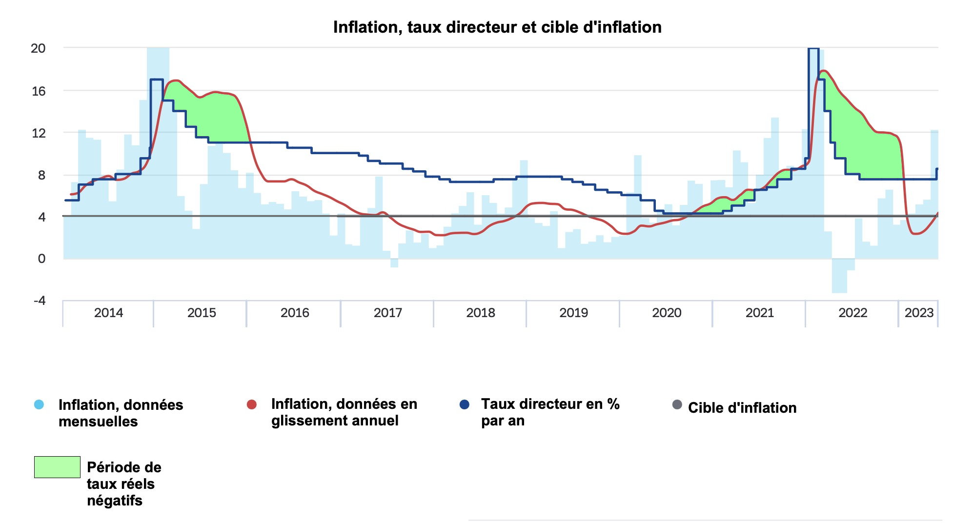 « Les relèvements des taux directeurs depuis juillet constituent une réponse à la matérialisation des risques inflationnistes, notamment liés à l’impact du taux de change. [12]»