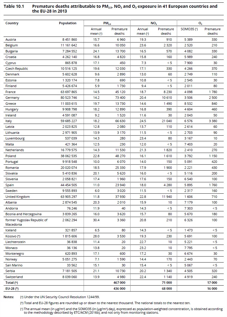 Cette étude européenne estime le nombre de morts prématurées par an en Europe : 550 000 morts prématurées par an, 6 000 000 d’années de vie perdues… (Source)