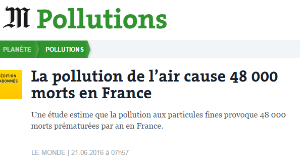- La pollution de l’air cause 48 000 morts par an en France (+ présentation des polluants)