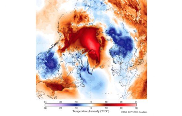 La station météorologique où ces températures ont été enregistrées, celle du Cap Morris Jesup, n’est située qu’à 650 km du Pôle Nord. La température devrait y être d’environ -30 °C en cette saison, mais toutes les zones arctiques situées au-dessus du 80e parallèle connaissent en moyenne un temps 6 °C au-dessus de la normale depuis le début de l’année, avec des pointes à +14 °C. Il s’agit d’un record pour cette région du monde.