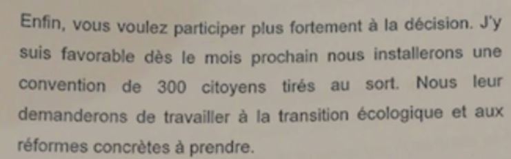 Mais immédiatement derrière il dit « ne pas affaiblir la démocratie représentative », « équilibres », donc on peut être sur que ce RIC ne pourra pas être utilisé sur les questions importantes