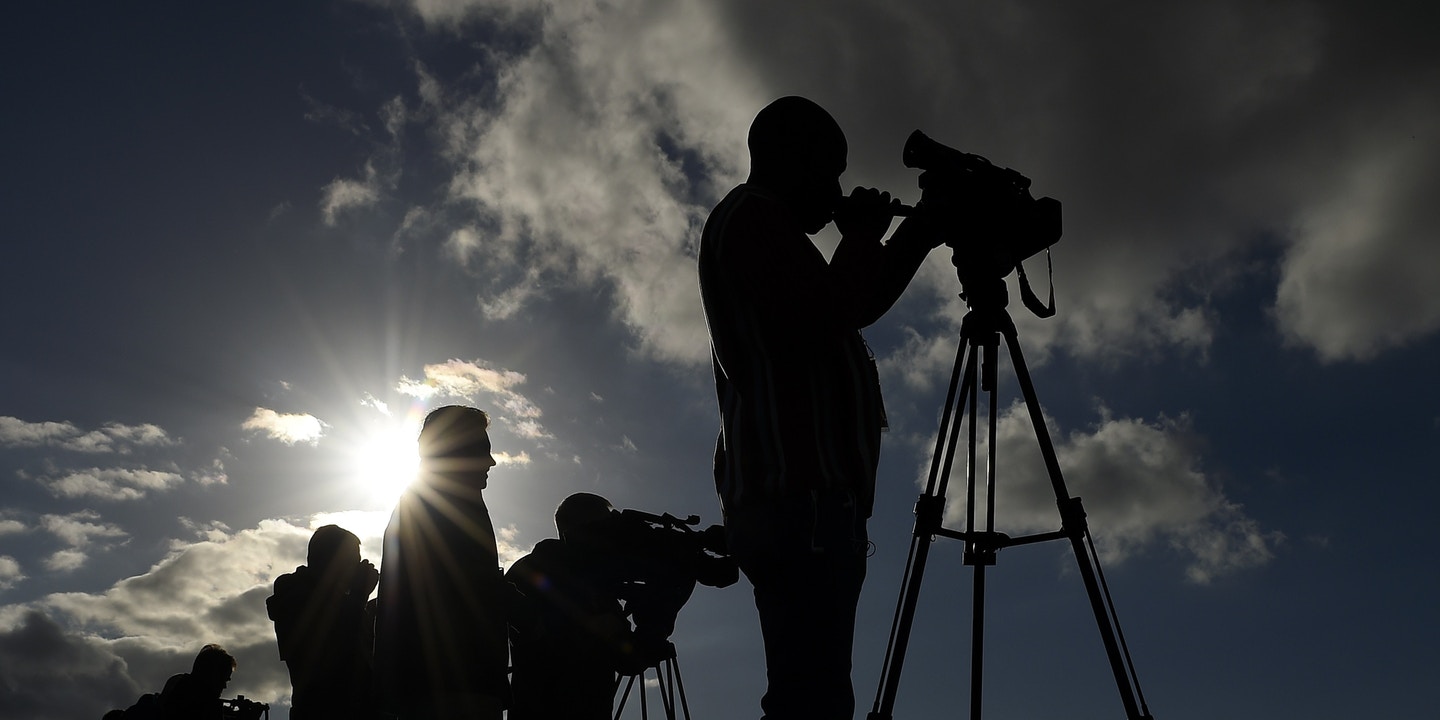 Photo du haut : Des journalistes filment une séance d’entraînement de l’Afrique du Sud au Surrey Sports Park, le 28 octobre 2015, à Guildford, en Angleterre.