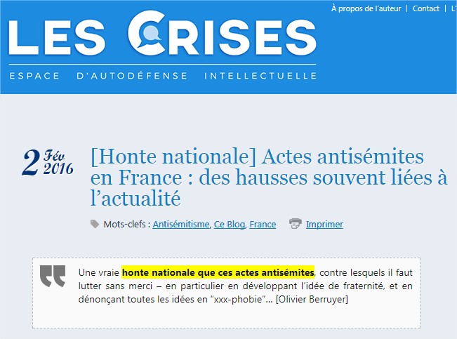 Pour gagner du temps de polémique inutile, je rappelle que nous dénonçons évidemment sur ce site le racisme et l’antisémitisme sans la moindre complaisance, tout comme l’extrémisme :