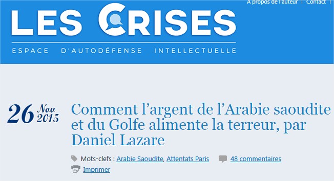 Nous avons suffisamment critiqué ici les dérives de l’islamisme, et, surtout, l’énorme soutien à celui-ci par l’Arabie et le Qatar pour ne pas y revenir…