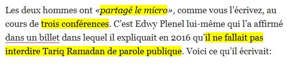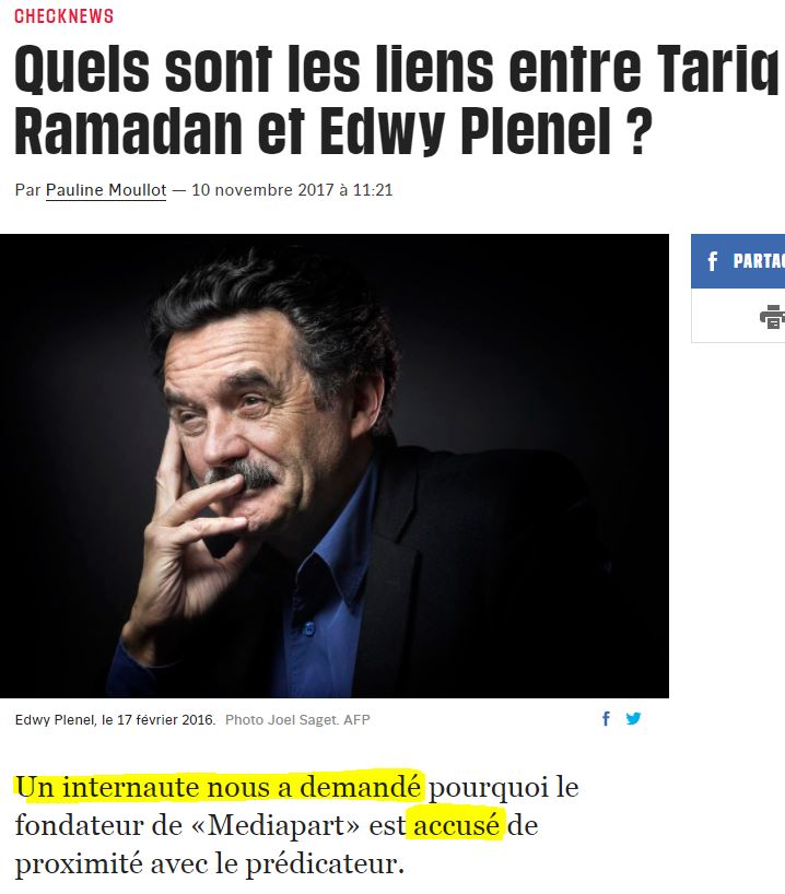 Plus sérieusement, grave sujet donc : Plenel a fait 3 conférences avec Ramadan. Du coup, les fact-checkeurs expliquent bien les choses à leur public (en particulier à ceux lobotomisés) :