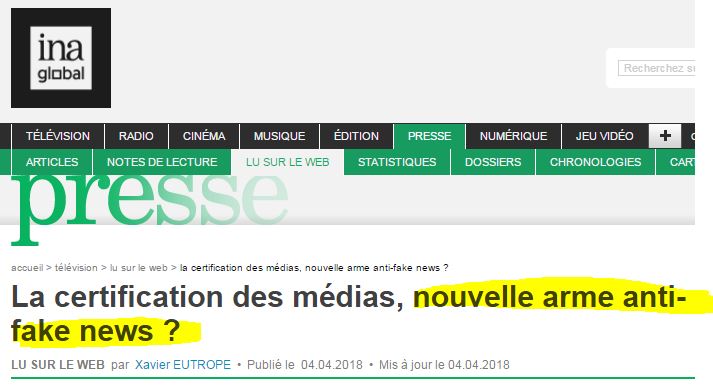De plus, il est comique de voir les plus gros diffuseurs historiques de Fake News (Timisoara, Couveuses de la Guerre du Golfe, Bosnie, Fantastiques promesses de l’euro, Armes de Destruction Massive, Massacres en Libye, Syrie… Pour ne pas parler des petites du quotidien, ni de leur proverbial manque de pugnacité face au Pouvoir #Skripal) se poser en modèles de vertu.