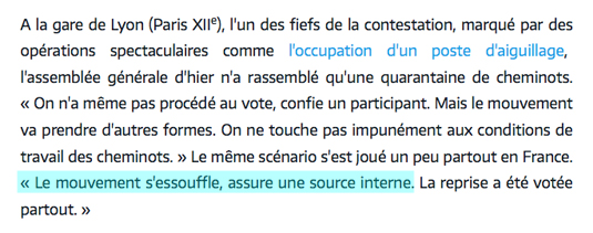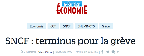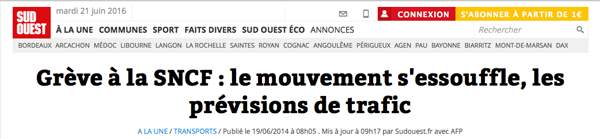 Dernier exemple de cette façon de (re)couvrir un mouvement social, par nature fragile et incertain, en guettant les moindres signes de faiblesse pour les propulser à la une – contribuant ainsi, au moins symboliquement, à l’affaiblissement qu’on prétend constater : la grève à la SNCF, dont l’essoufflement est signalé dès le 3 juin :