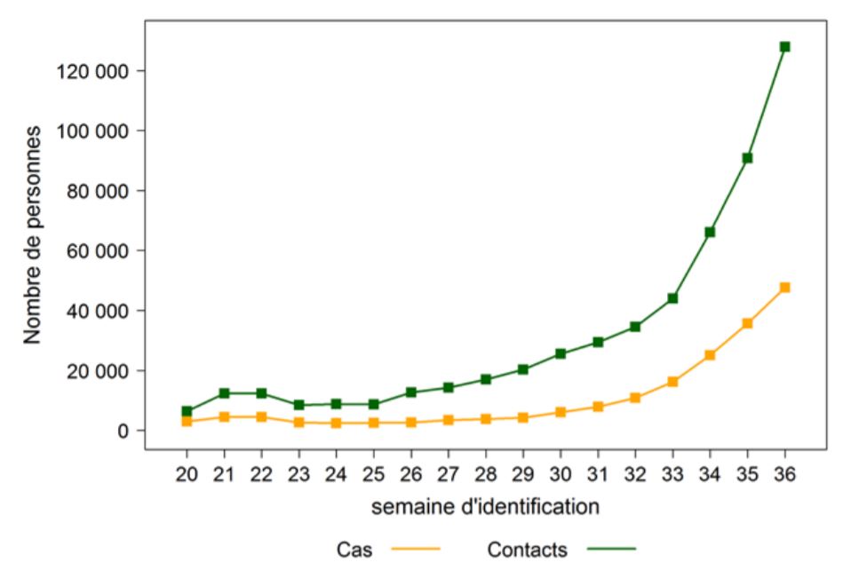 Rappelons que nous testons plus d’1% de la population chaque semaine, et que la Sécurité sociale a identifié près de 130 000 personnes ayant été en contact avec les 47 000 personnes détectées positives la semaine passée : nous pourrons probablement difficilement faire beaucoup mieux dans les semaines à venir :