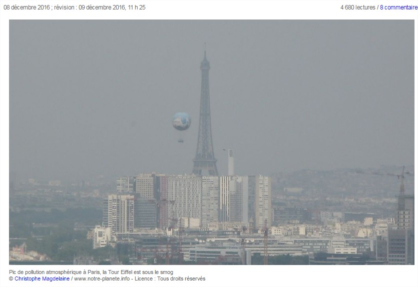 - arrive alors le très fort pic du 1er décembre à Paris – où la pollution atteint presque les 140 µg, le double de ce qu’on trouve à ce moment sur le périphérique ! La pollution est essentiellement locale, piégée par le plafond bas et l’absence de vent, comme si on fait tourner son moteur dans le garage sans ouvrir la porte…
