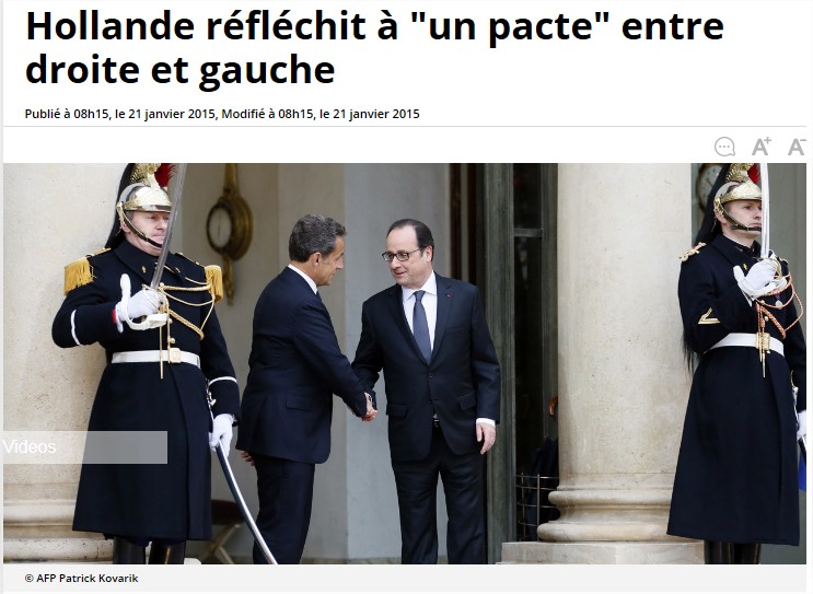 Hollande veut un « pacte » entre droite et gauche. La réalité, c’est que François Hollande n’a aucune marge de manœuvre budgétaire, aucune perspective de croissance. Et le seul levier pour être à la hauteur de l’histoire est de proposer une autre méthode de travail, de gouvernance. C’est ce que prépare en secret François Hollande. Un des ses amis de toujours raconte : « le président réfléchit à un pacte avec le pays, sur le modèle du compromis historique en Italie dans les années 70 », où droite et gauche avaient accepté de travailler ensemble.