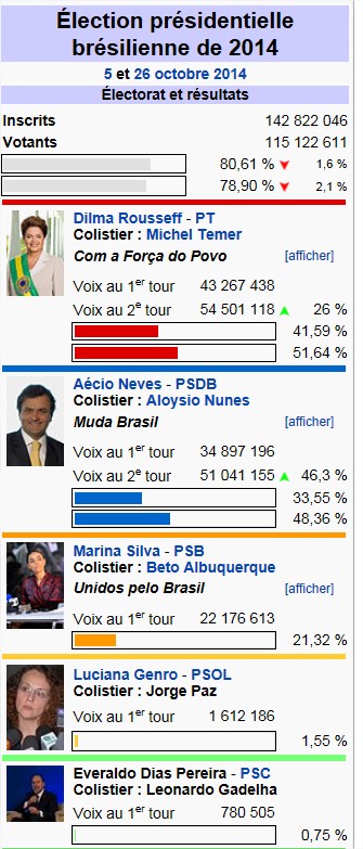 Et du coup, tout le monde est d’accord avec la CIA, sauf l’Huma qui a eu le bon goût s’en tenir à un sobre « Roussef réélue présidente du Brésil avec 51,45% des voix ».