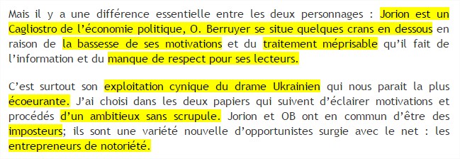Et plus généralement je ne crois à aucun complot délirant ! Et surtout pas en Ukraine ! Il faut vraiment ne jamais avoir lu un seul de mes billets pour oser prétendre le contraire…