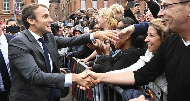 En visite dans la ville rose, le Président de la République a pris plus d’une heure pour saluer ses supporters réunis place du Capitole : selfies, autographes, poignées de main et même quelques larmes !