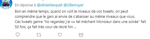 AlerterJe pense que tous ces gens sont furieux car ils pensaient qu’ils allaient pouvoir remettre Olivier à sa place dès la 1èr joute intellectuelle.
