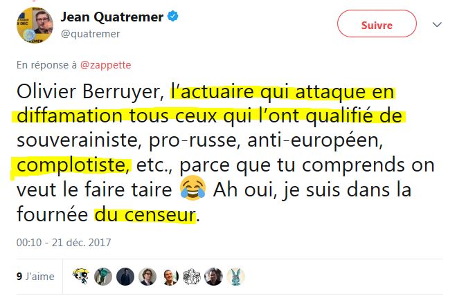 1/ oui c’est quand même injuste d’être poursuivi quand tu traites quelqu’un de complotisme alors qu’il ne l’est pas
