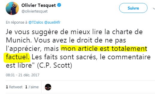 J’avoue que ma première réaction a été de rédiger une plainte pour saisir le Conseil de Déontologie du Journalisme.