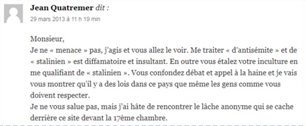 On m’a signalé que l’ineffable Jean Quatremer (du calme M. Quatremer, ce n’est pas une insulte, c’est juste que les mots me manquent) est apparu :