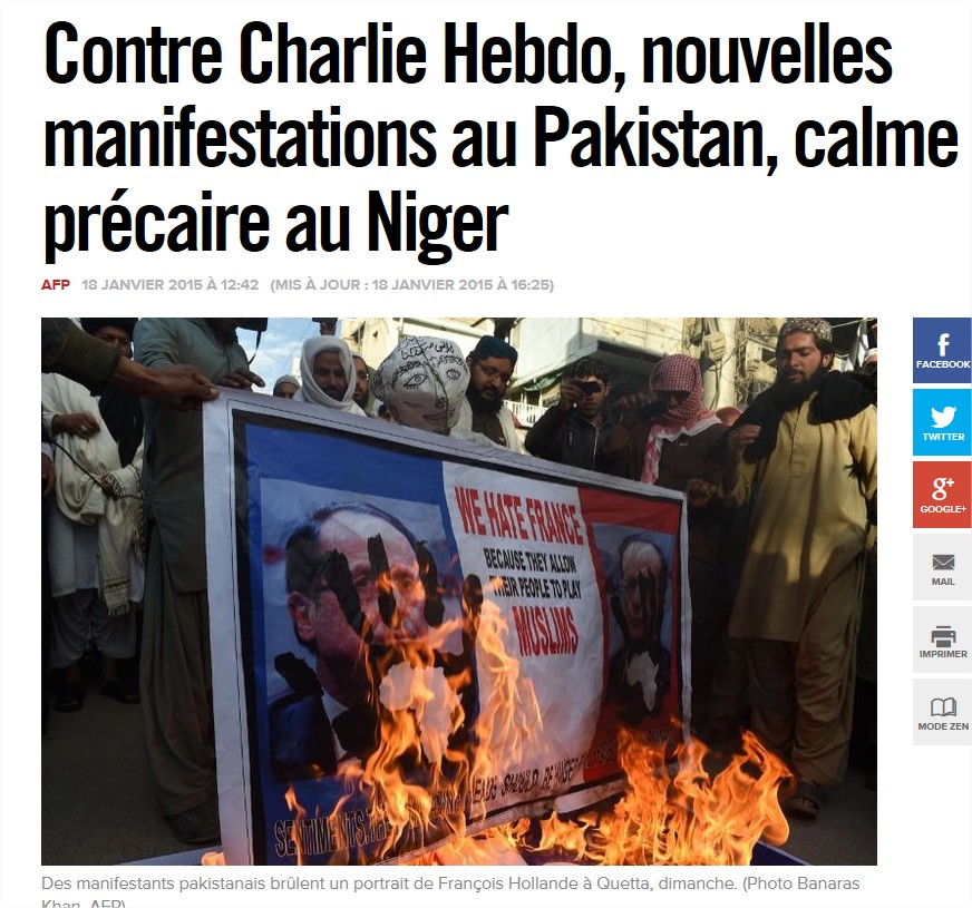 Mais aussi les fanas faussement religieux islamistes n’ont meme pas besoin de ces excuses pour semer la mort parmi les populations du Niger ou de Syrie , Irack aides par cette fameuse coalition des « willing » axe du bien .