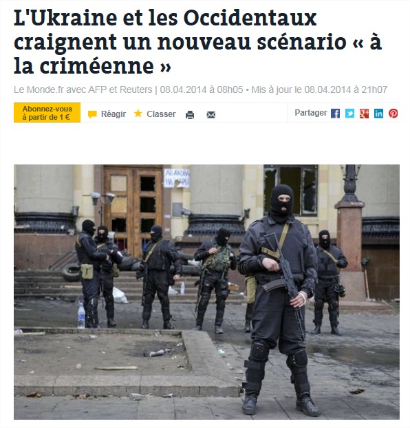 « Les séparatistes qui prennent les armes, qui envahissent des bâtiments, seront traités comme le prévoient la Constitution et les lois, comme des terroristes et des criminels », a déclaré mardi le président ukrainien par intérim Olexandre Tourtchinov. ON CROIT DONC RÊVER.