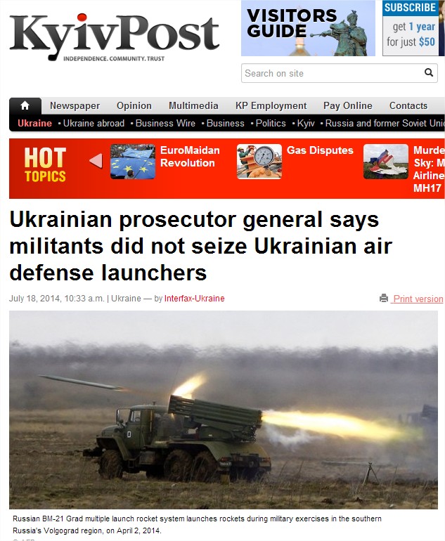 Et le propre Procureur général d’Ukraine a pour sa part démenti que les rebelles possédaient une telle arme (comme ici dans le Kiev Post ou là sur ITAR-TASS)… Mais quelle importance ?